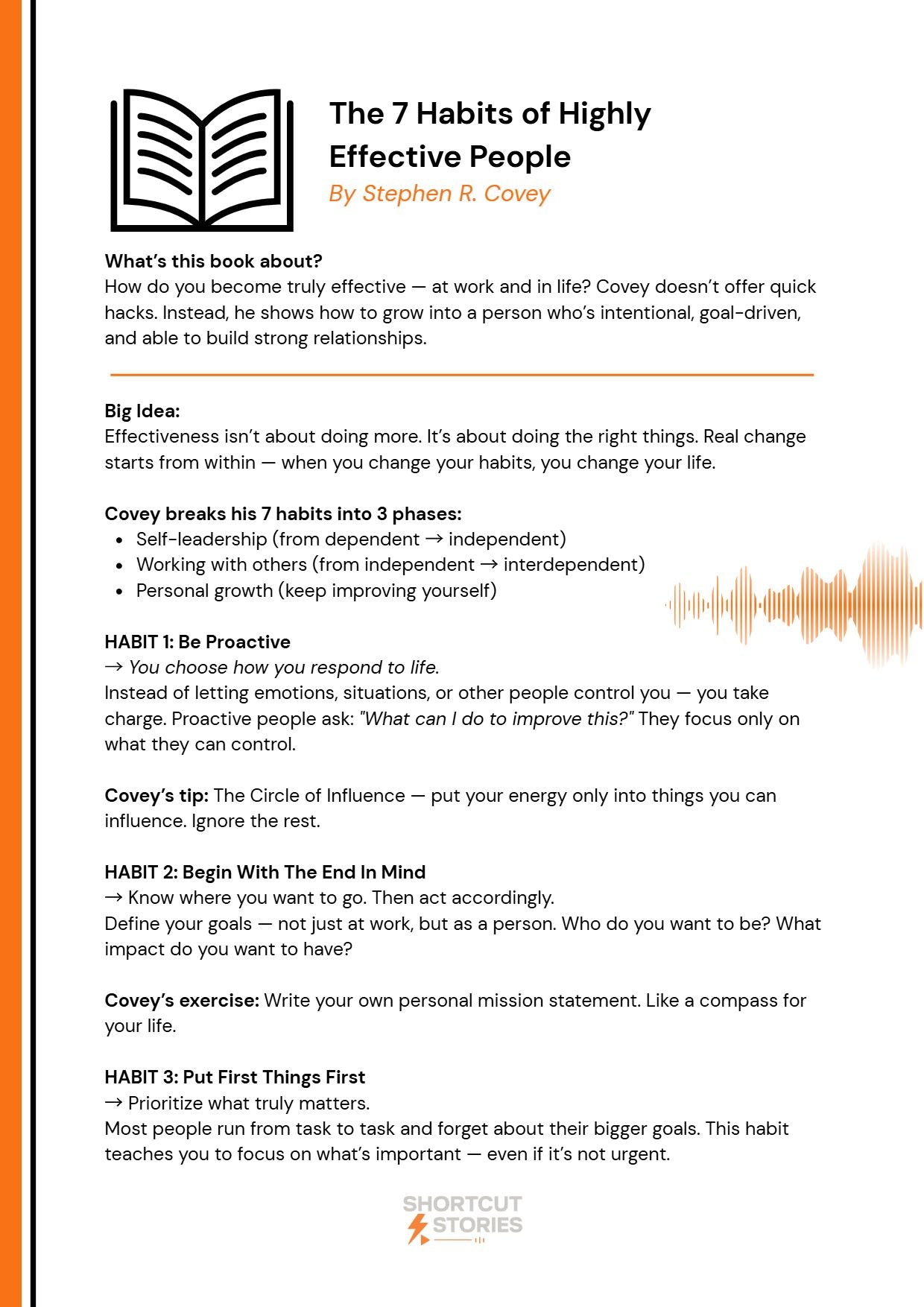 → Instantly! After checkout, you’ll receive access to your personal Shortcut Stories library with all episodes, summaries, quizzes & extras.